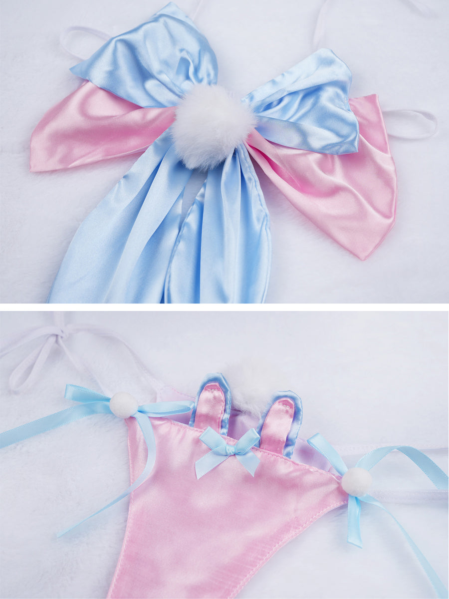 Design: The top features a white pompom and bow design for a touch of playfulness, while the cute rabbit element design and plush bow decoration on the bottom add a touch of cuteness. The strappy underwear comes with a removable bunny tail on the back, making this outfit both sexy and adorable.