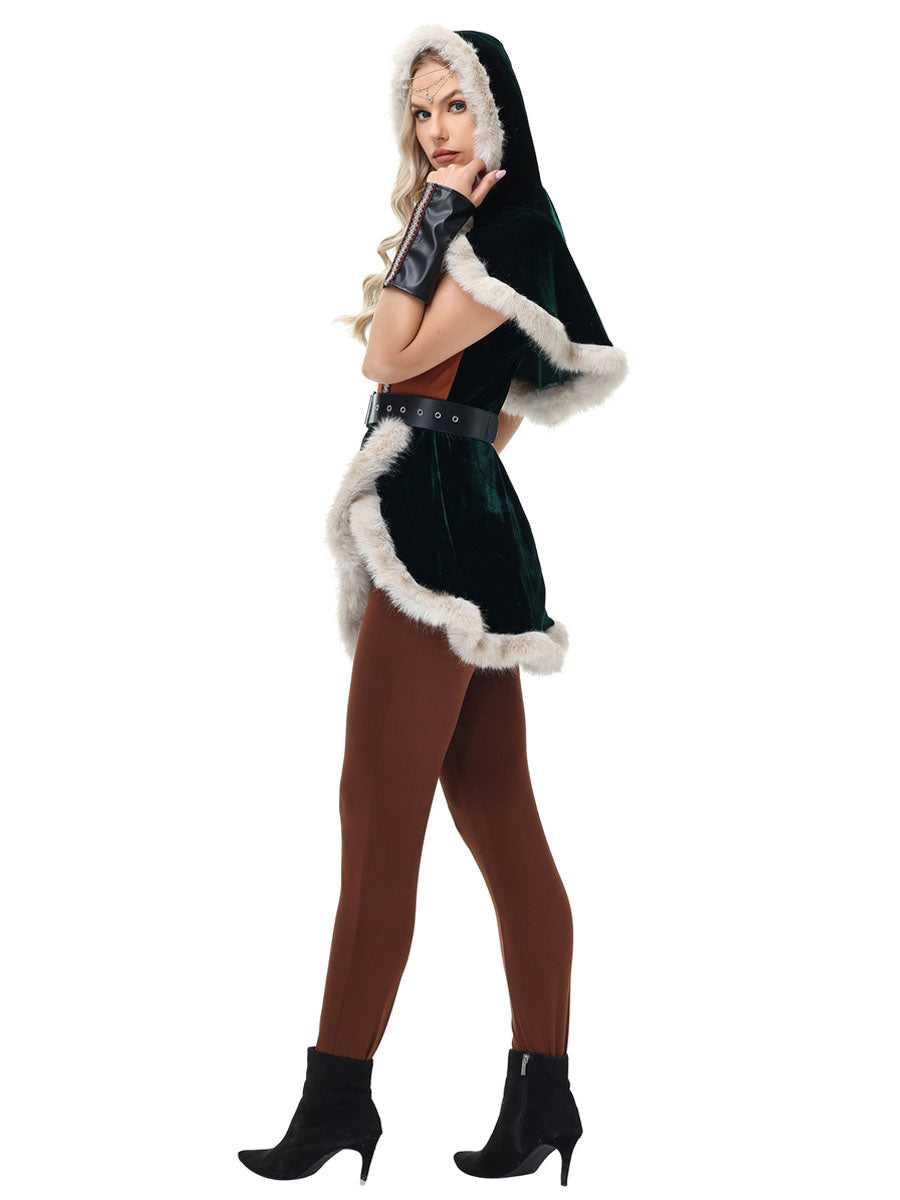 Package Including: 1* Hooded Cape+1* Tunic Dress+1* Pants+1*Belt +2* Wrist Cuffs