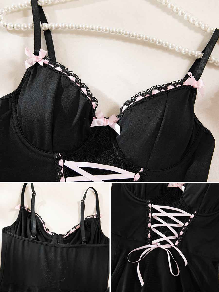 Design: This lace-up babydoll lingerie set features a black sheer mesh dress with adjustable straps, soft molded cups, a lace-up corset front, and matching G-string panties. Whether you're dressing up for a special night or just feeling cute, this sexy lingerie is designed to make you feel like the main character.