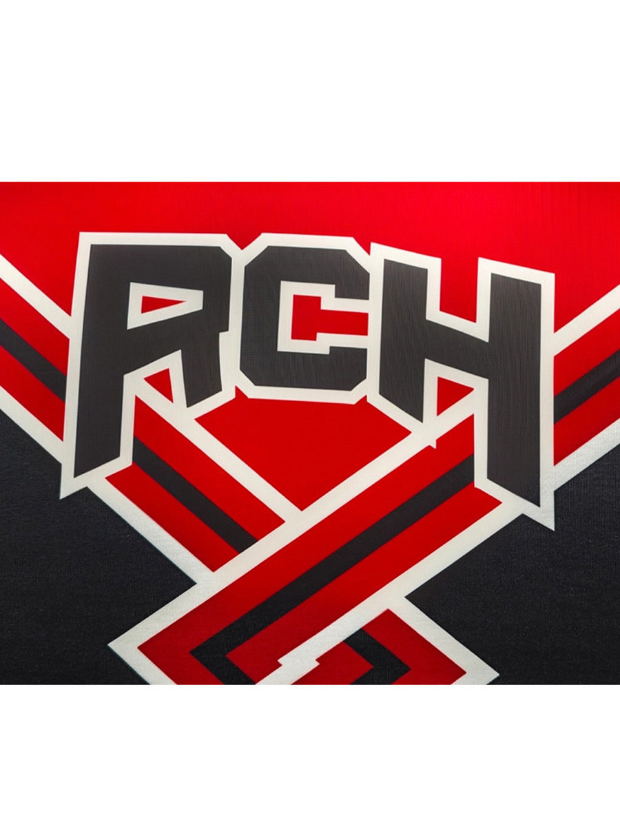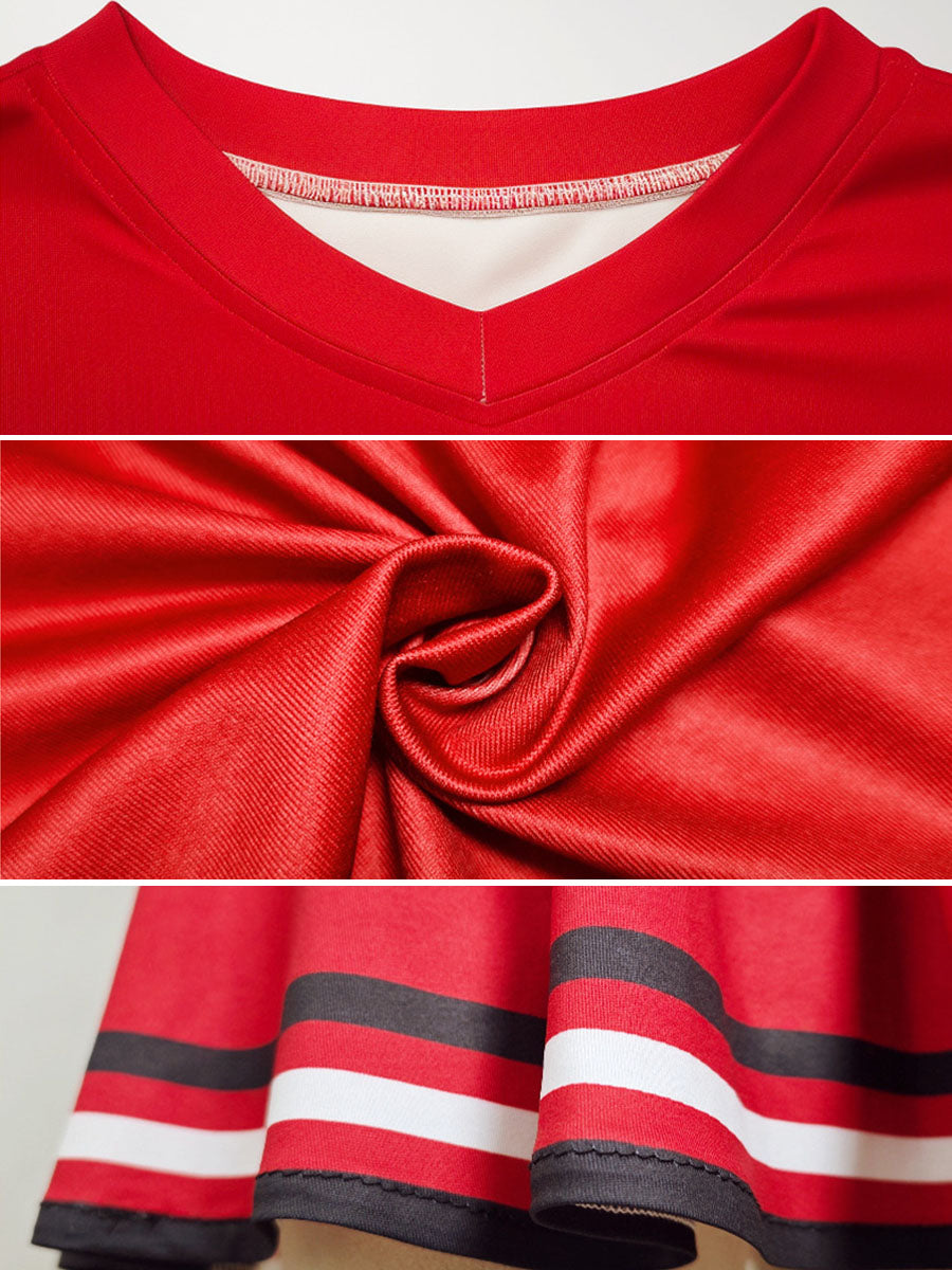 Design: This Adult cheerleader outfit for women features a classic red and black V-Neck top with the iconic "RCH" logo, and a pleated high waist skirt with a striped hem. Be a fierce and confident cheerleader with this outfit.