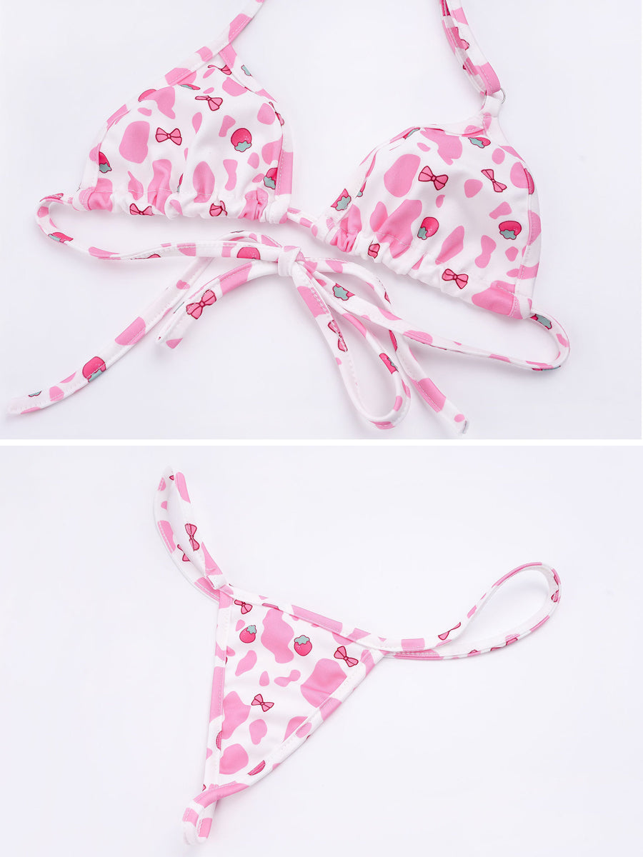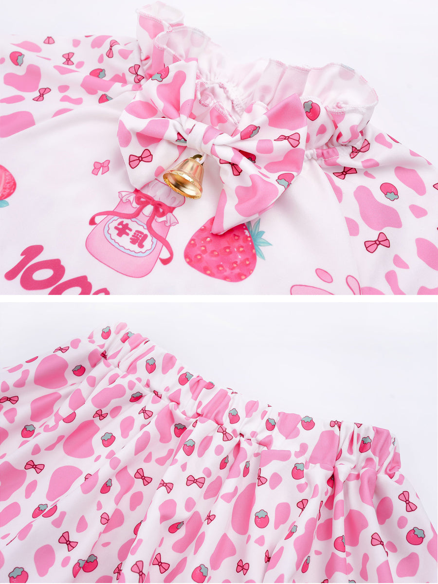 Design: Sexy Cow Costume feature a long-sleeve blouse with a ruffled collar, bows, and adorable bells, along with an elastic skirt in a matching cow print. Paired with a micro bikini set, it adds a touch of both purity and sexiness.